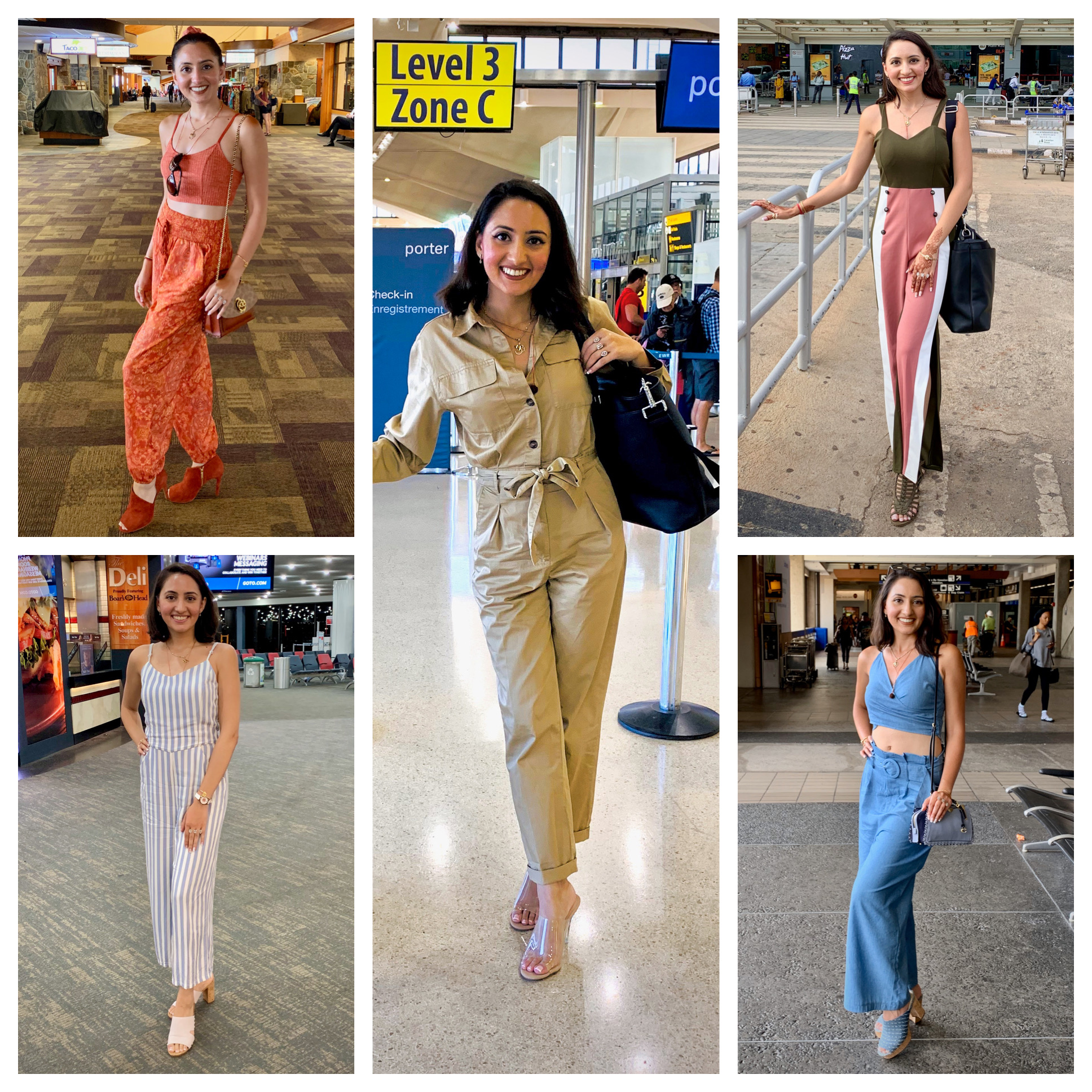 When a look flows well the way matching or coordinated ones do, it automatically gives a clean, organized vibe. This is also an easy way to not have to think about your look and just throw on the set and jet out door! Separate sets are easier to manage in airplane bathrooms, but I love the freedom and ease of wearing a romper – at the end of the day, itโs what suits you.