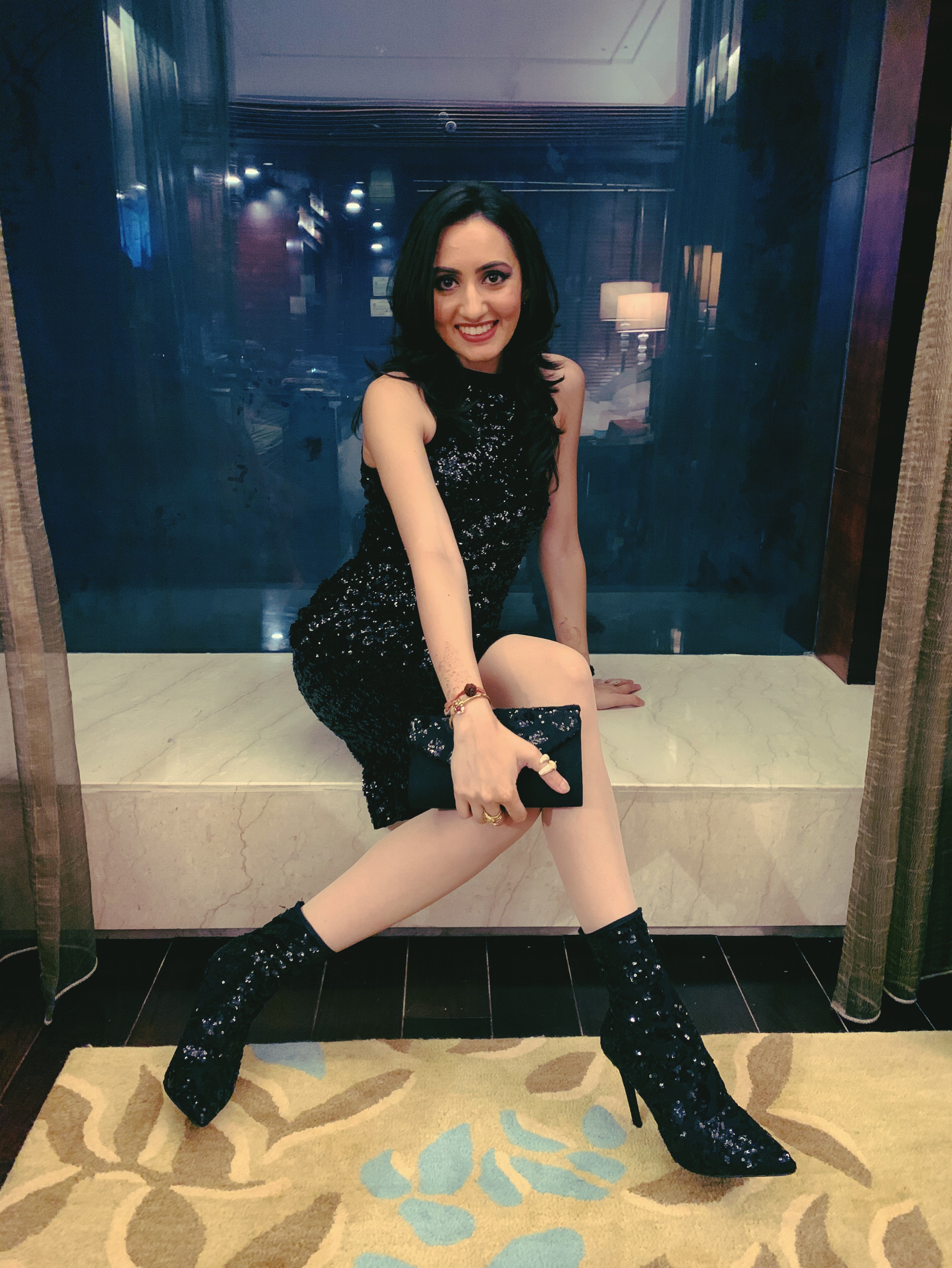 After sifting through my closet, I decided to go with an all-black tailored tuxedo jumpsuit by renowned Indian Fashion Designer, Ritu Kumar. It fit the vision perfectly, and the accessories really made it POP!