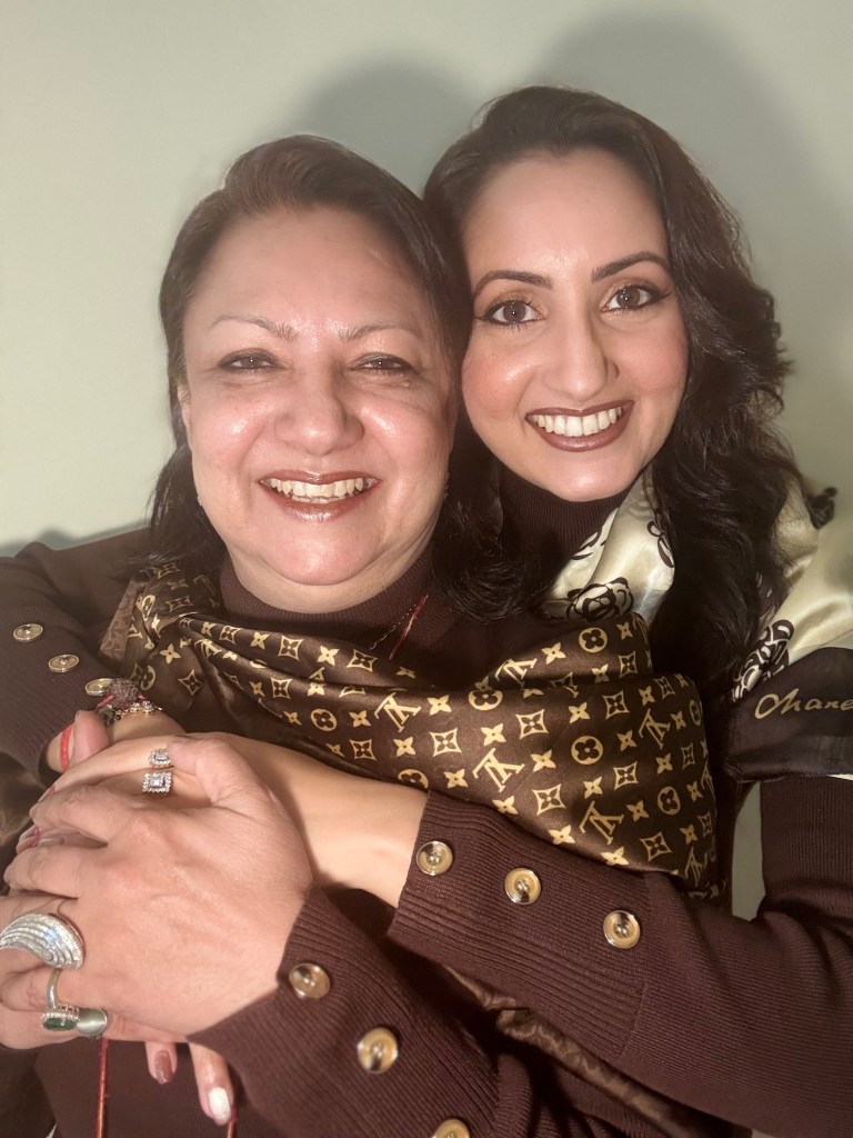 My jewelry included statement black and gold earrings with mother of pearl droplets from Van Cleef & Arpels, and a diamond & gold necklace, rings and bracelets from Veeni Jewels. For such a special event, rather than wear my black studded Apple Watch, I went with my black & rose gold Versace watch to match the outfit, but also remember my step-father, my Appa, as he loved children so very much.ย